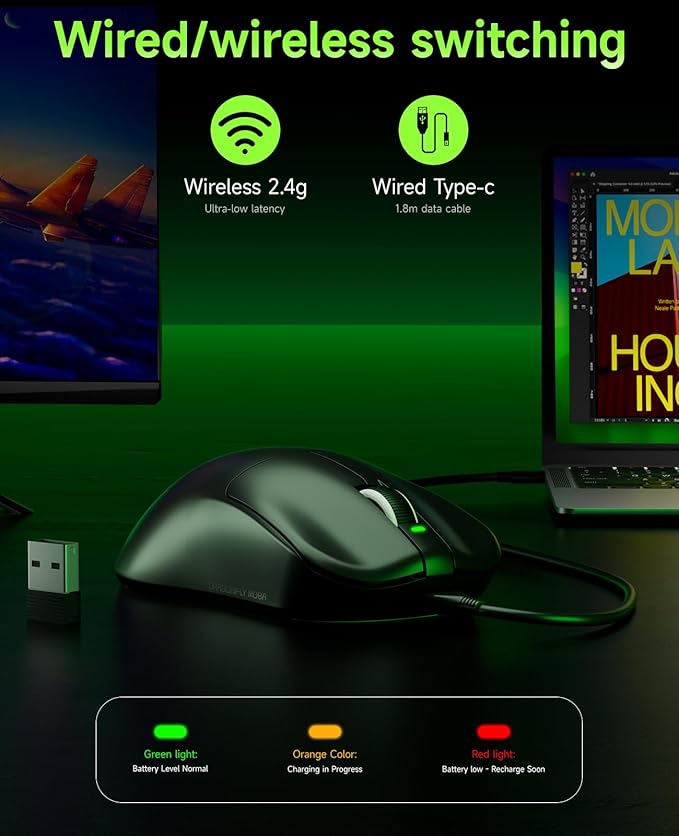 - PRO-GRADE PAW 3395 SENSOR + NORDIC CHIP – Up to 26,000 DPI, 650 IPS, 1000Hz polling. Lightning-fast tracking and ultra-low latency powered by the reliable NRF52840 chipset.