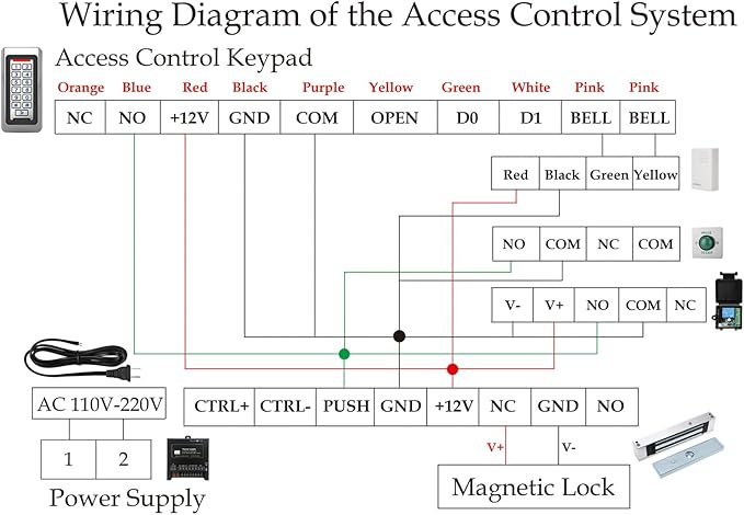 - All-in-One Access Control Kit - Includes a waterproof keypad access control keypad, 600lb electromagnetic lock, remote controls, power supply, exit button, doorbell, and a power cord for easy setup.
