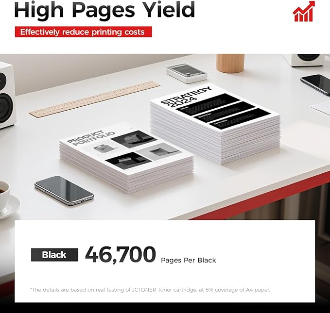 - High Page Yield: Up to 46,700 pages per black B600 B605 B610 B615 toner (Letter/A4, at 5% coverage)
