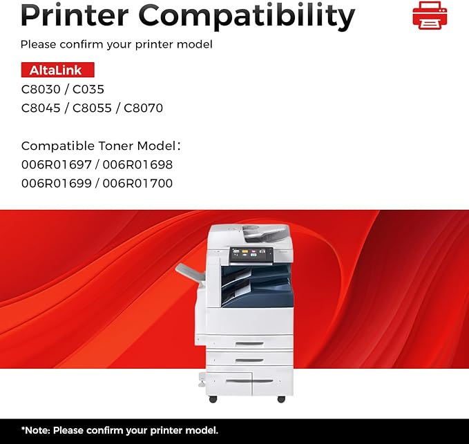 - Compatible Devices : Compatible for Xerox AltaLink C8030 C8035 C8045 C8055 C8070; Compatible Toner Model:006R01697,006R01698, 006R01699,006R01700 Compatible for Xerox AltaLink C8030 C8035 C8045 C8055 C8070; Compatible Toner Model:006R01697,006R01698, 006R01699,006R01700