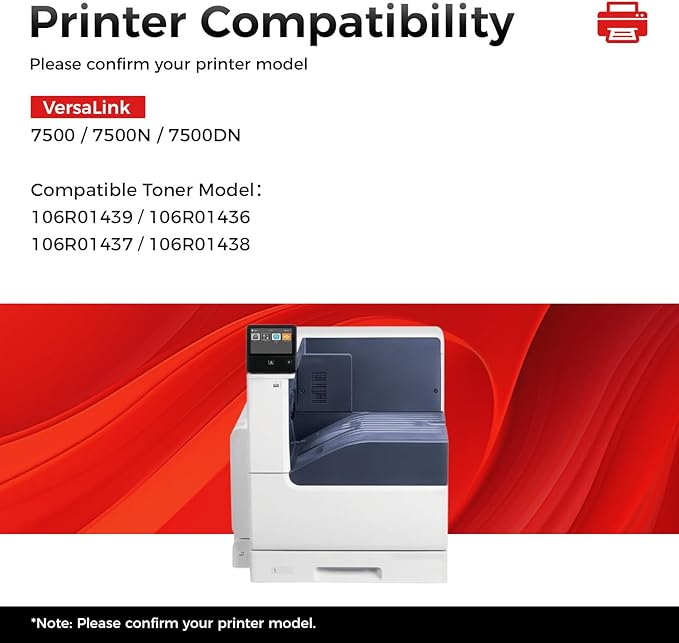 - Compatible Devices : Compatible for Xerox Phaser 7500, 7500N, 7500DN; Compatible Toner Model:106R01439,106R01436, 106R01437,106R01438 Compatible for Xerox Phaser 7500, 7500N, 7500DN; Compatible Toner Model:106R01439,106R01436, 106R01437,106R01438