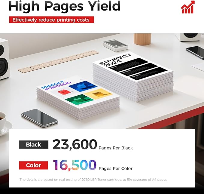 - High Page Yield: 23,600 pages for Black and 16,500 pages for Color toner cartridge (Letter/A4, at 5% coverage)