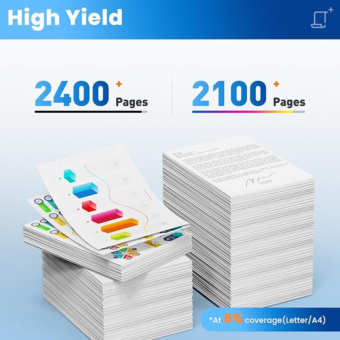 - High Page Yield: Up to 2400 Pages per 414A black toner cartridge, 2100 Pages per 414A Cyan toner cartridge, 414A Magenta toner cartridge, 414A yellow toner cartridge (5% coverage at A4 paper/letter).