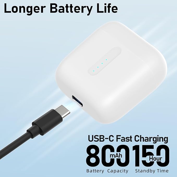 Wireless Earbuds, Ear Buds with Big Bass Stereo Sound, Lightweight Bluetooth Earbuds with 60 Hours Playtime (White)