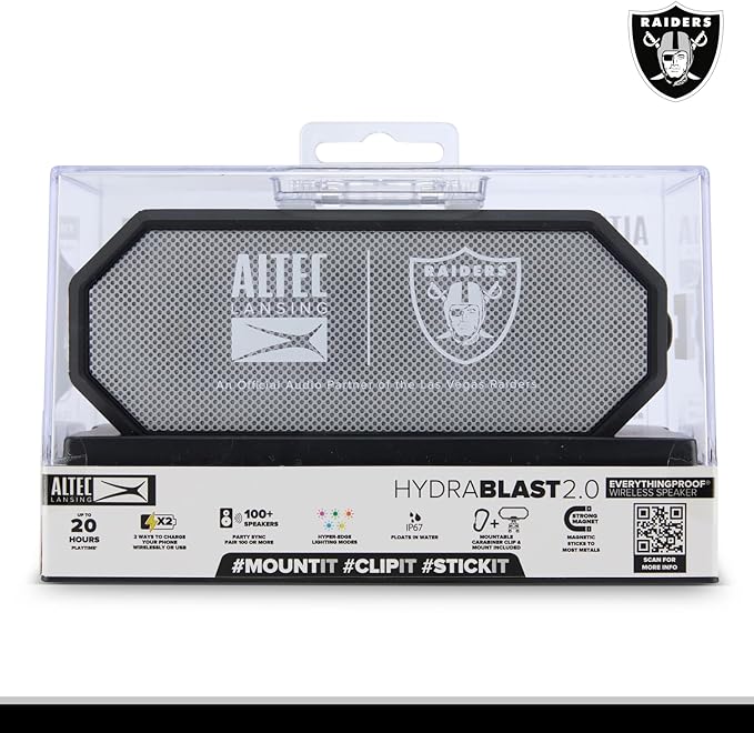 Altec Lansing - Portable Bluetooth Speaker HYDRABLAST 2.0, Waterproof IP67, 20W Output Power, Magnetic Bluetooth Speaker (Raiders)
