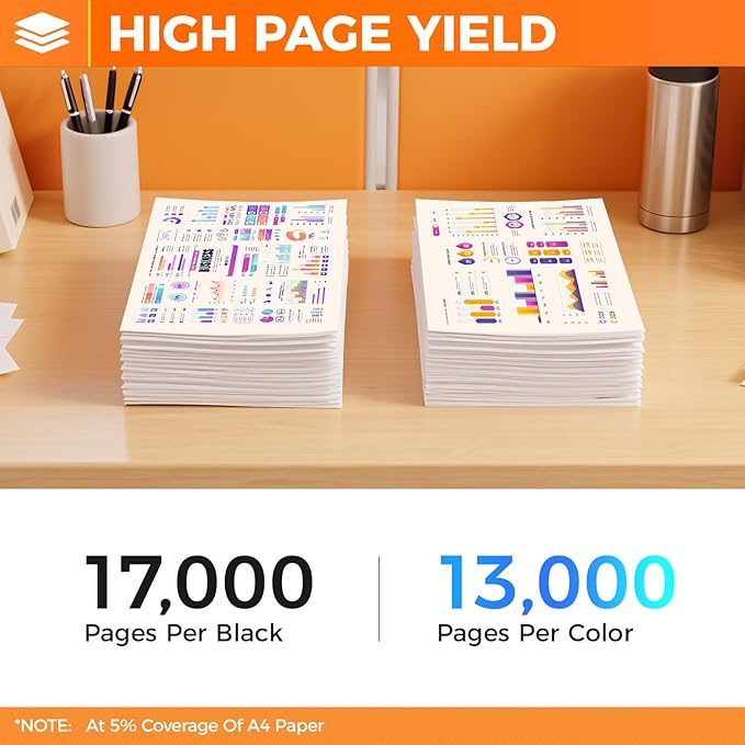 - Yield & Version: 17,000 pages per TK5292 Black Toner Cartridge and 13,000 pages per TK5292 Color Toner Cartridge (at 5% Coverage). High Yield Version TK-5292 toner cartridges.