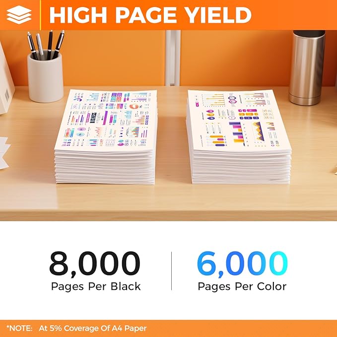 - Yield & Version: 8,000 pages per TK5272 Black Toner Cartridge and 6,000 pages per TK5272 Color Toner Cartridge(at 5% Coverage). High Yield Version TK-5272 toner cartridges.