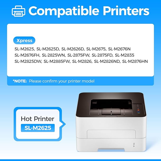 - Compatible Printer: Compatible with Samsung Xpress SL-M2625,SL-M2625D,SL-M2626D,SL-M2675,SL-M2676N,SL-M2676FH,SL-2825WN,SL-2875FW,SL-2875FD,SL-M2835,SL-M2825DW,SL-M2885FW,SL-M2826,SL-M2826ND,SL-M2876HN Series Printer.