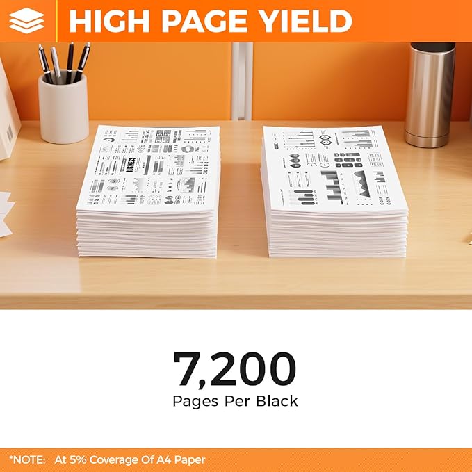 - High Pages Yield: Based on the industry standard 5% page coverage, the black cartridge yields approximately 7,200 pages