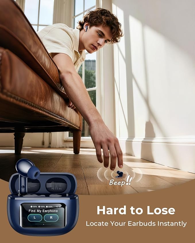 - Smart Touchscreen Case for Effortless Control: Our wireless earbuds come with a smart charging case that does more than just charge. Unlike traditional cases, it features a responsive touchscreen—skip tracks, adjust volume, manage calls, take remote photos, or locate your earbuds with just a tap or swipe. Packed with 10 powerful functions in one compact case, it’s the ultimate control hub. No phone needed, making everything more convenient and smarter.