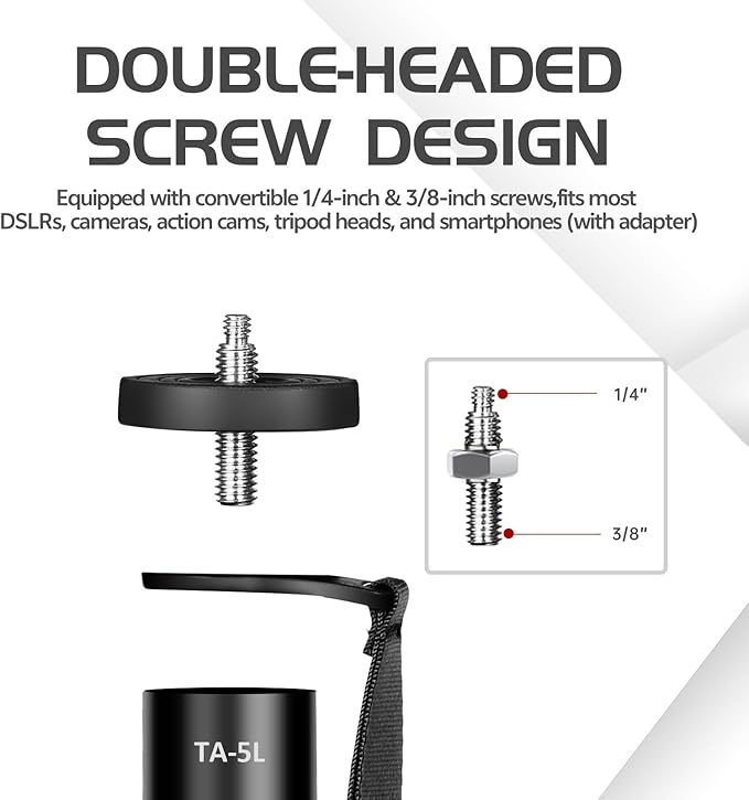 - 【Universal Compatibility】:Equipped with convertible 1/4-inch & 3/8-inch screws, fits most DSLRs, cameras, action cams, tripod heads, and smartphones (with adapter),Ideal for sports/event photography and vlogging.