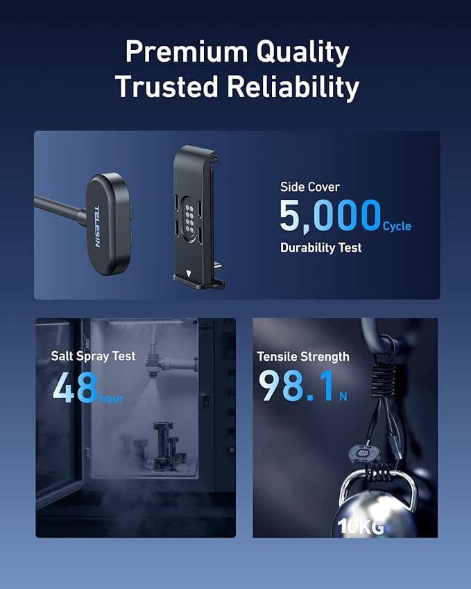 - 【Premium, Stormproof Durability】Trusted reliability built for adventure. Features a side cover rigorously tested (5000+ plug/unplug cycles, 48hr salt spray test) and a cable with high tensile strength (98.1N / 10kg pull test) for stormproof performance.