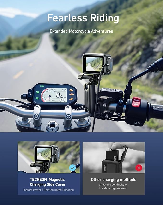 - 【Unlimited Power, Uninterrupted Adventure】Experience truly fearless riding and extended motorcycle adventures. Our magnetic charging system offers unlimited power potential, eliminating disruptive battery swaps and ensuring your shooting never stops.
