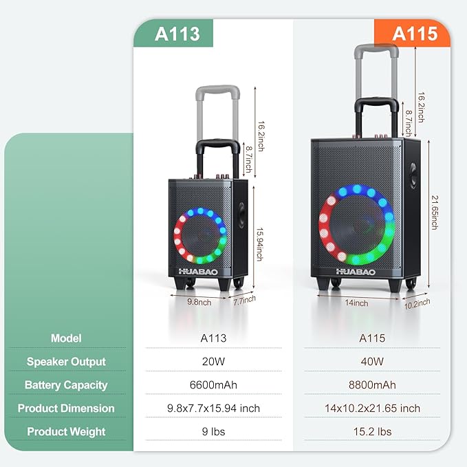 - Portable Rolling Wheels and Trolley Speaker: This portable Bluetooth karaoke speaker with wheels features a convenient trolley handle and smooth-rolling design for easy mobility. Not too bulky, not too small—perfect for outdoor parties, family gatherings, and indoor karaoke nights. Take this portable speaker with handle to the park, roll it to a friend’s house, or use it as a trolley PA system at your next event. The retractable handle saves space when stored. It’s your go-to outdoor Bluetooth speaker for any occasion.