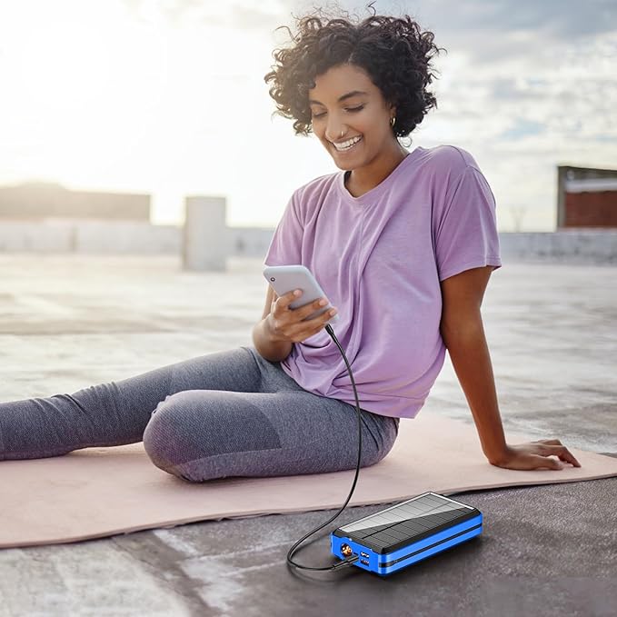 - 【Solar charging and three LED lighting modes】: The device provides a solar panel that can charge the device in the sun. Three modes of lighting are also provided. Double-click the button to turn on the bright mode, press the button once to switch to SOS mode, and press the button once to switch to the strobe mode. Double-click the button to turn off the light in any mode. Essentials for camping, hiking, long trips and family emergencies