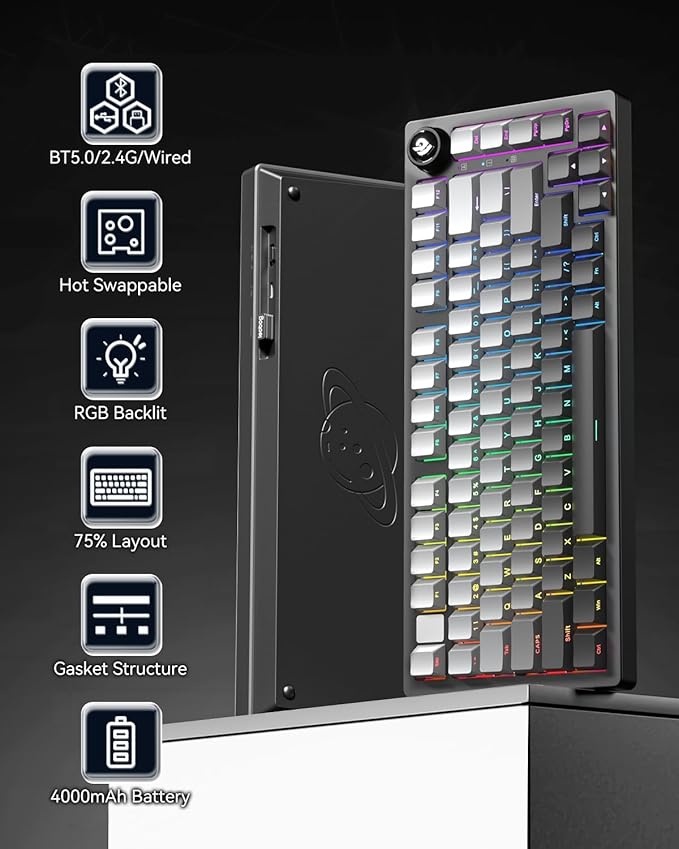 - 3-Mode Connection Mechanical Keyboard: LEOBOG keyboard supports BT5.0, 2.4GHz wireless and USB wired connection, can connect up to five devices at the same time, and easily switch by shortcut keys or side button.This keyboard features a 75% layout with 81 basic keys, A balance between concise design and complete functionality, improve your experience while saving space
