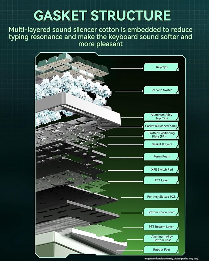 - Aluminium Alloy Cover: The usb keyboard case is made of top-tier aluminium material for superior heat dissipation performance, robustness and durability to ensure the longevity of the keyboard. Exquisite powder coating process, feel luxurious, prevent fingerprints and keep the shell neat. In addition, GASKET design that greatly reduces cavity noise and improves typing sound. It's ideal for a satisfying low-noise typing experience in both office and gaming environments