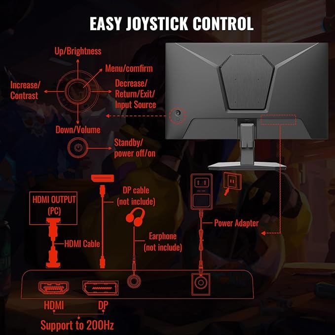 - Convenient Ports - One HDMI 2.1 ports plus one DP 1.4 port, both up to 200Hz refresh rate; One HDMI cable included in the package; Audio Jack (no built-in speakers); VESA 75mm*75mm
