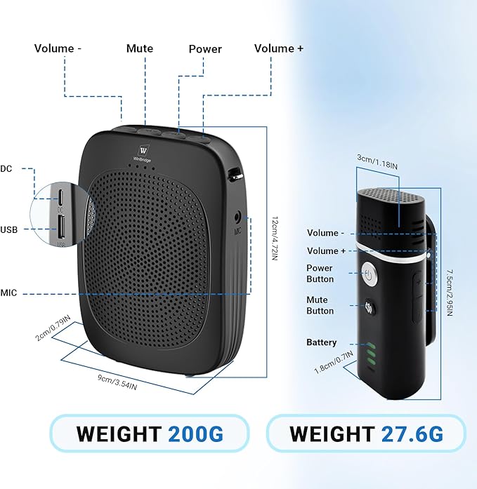- Wireless Voice Amplifier with Bluetooth 5.0 & 15m Range:Experience hands-free freedom with this Bluetooth voice amplifier! The wireless lapel mic pairs instantly at startup and works up to 15m (49ft)—perfect for moving around classrooms or stages. Clip it to your collar or hold it like a mini megaphone for flexible, crystal-clear sound.