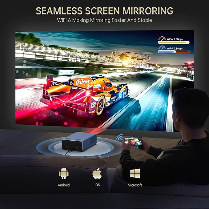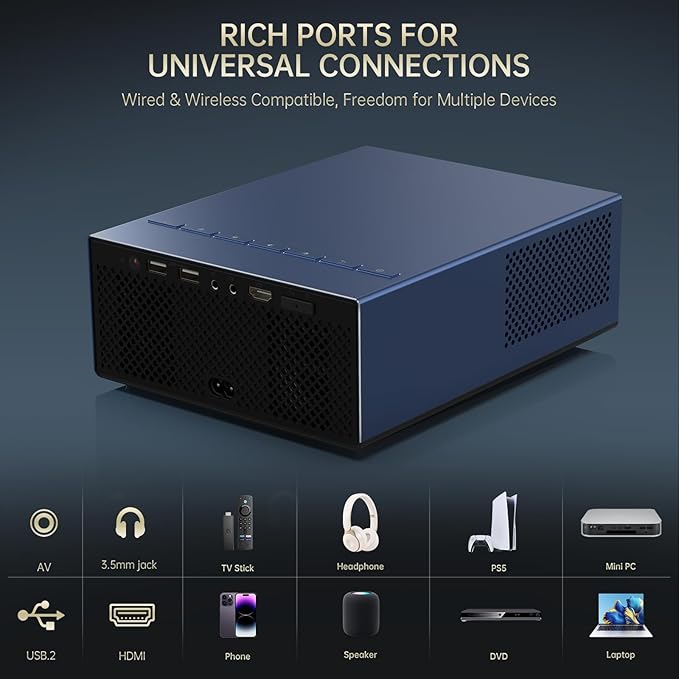 - [Rapid Connect & Portable Design] Equipped with WiFi 6 and Bluetooth 5.3, this metal Bluetooth projecter delivers smooth, fast streaming—3x faster than WiFi 5. Its compact size and tough metal build make it great for life on the go.