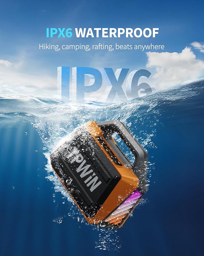 - 【IPX6 Waterproof Rugged Speaker】Designed for outdoor and multi-scenario use, so waterproof speaker has a very comfortable and portable handle and excellent waterproof, dustproof and drop-proof performance. Whether you are by the pool, on the beach, or on the way to outdoor adventures, Portable bluetooth speakers deliver waterproof durability and impressive battery life for outdoor listening