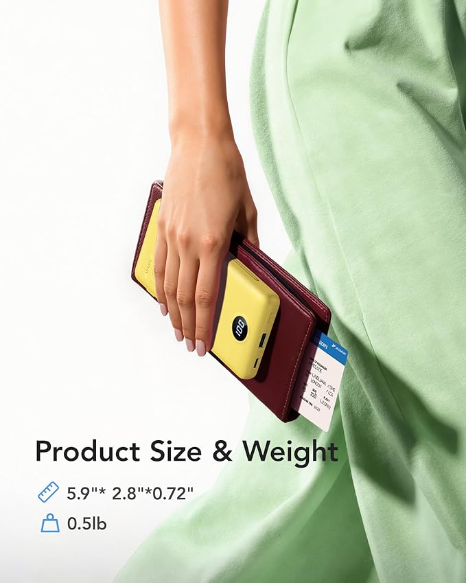 - [Slim & Compact Design] With dimensions of 5.9 x 2.8 x 0.7 inches and a weight of 8 ounces, this product's slim and compact design enhances on-the-go convenience without adding extra weight.