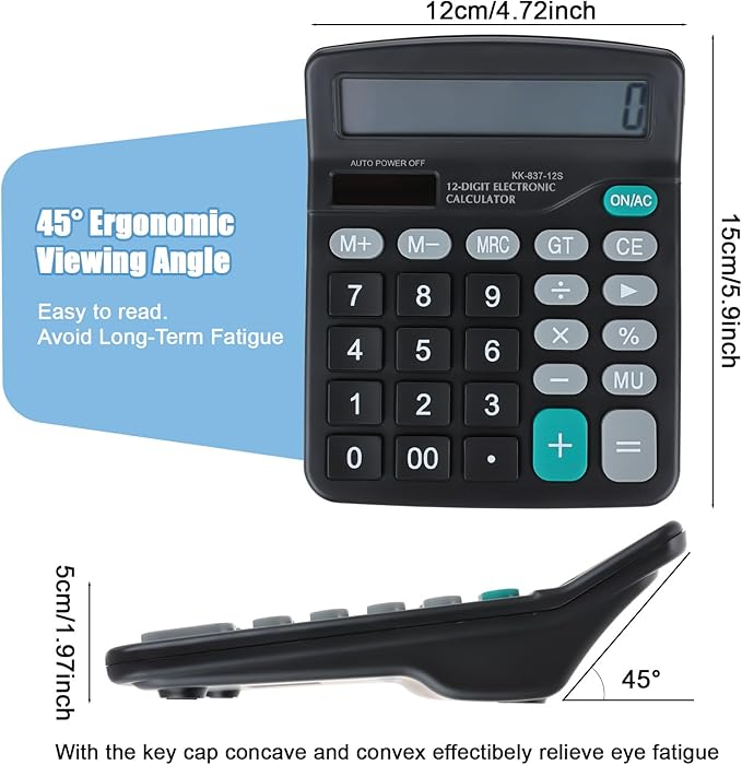 - Large 12-Digit LCD Screen: PS material, size 5.7 x 4.7 x1.8 In, weight 4 Oz (1 Piece). Crisp jumbo display shows full calculations clearly, reducing eye strain during long accounting sessions or classroom lessons.