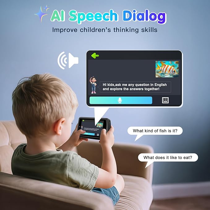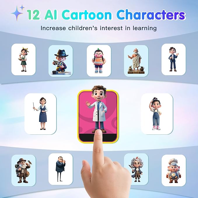 - 【AI LEARNING COMPANION】"Take a photo and meet 12 interesting AI companions!" Children can discover a hidden world of wonders through the kids camera's photo recognition feature. For example: Point at a pinecone → "Encyclopedia Doctor" explains forest secrets! Capture a butterfly → "Storyteller" tells magical stories! 12 unique cartoon characters not only spark children's curiosity but also enhance their learning interest! (Wi-Fi required)