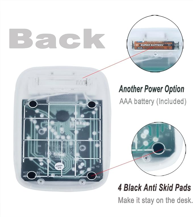 - Dual Powered Calculator - The desktop calculator is powered by solar and 1 AAA battery (included). In the presence of sunlight or light, the battery can be dispensed with. However, due to life's variations in light, it is recommended that one AAA battery be inserted at the same time for consistent and accurate use. Automatically shuts down after 10 minutes of inactivity to extend battery life and ensure longevity