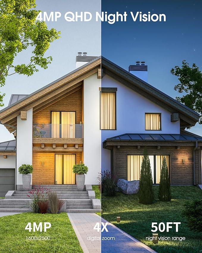 - ๐๐๐ ๐๐ฅ๐ญ๐ซ๐ ๐๐ ๐๐๐ฌ๐จ๐ฅ๐ฎ๐ญ๐ข๐จ๐ง ๐ฐ๐ข๐ญ๐ก ๐๐ง๐ก๐๐ง๐๐๐ ๐๐ข๐ ๐ก๐ญ ๐๐ข๐ฌ๐ข๐จ๐ง: Captures crystal-clear 2560ร1440p footage with 2ร sharper details than 1080p. Advanced IR night vision provides 33ft visibility in complete darkness, while the optional color night mode delivers vivid nighttime images.