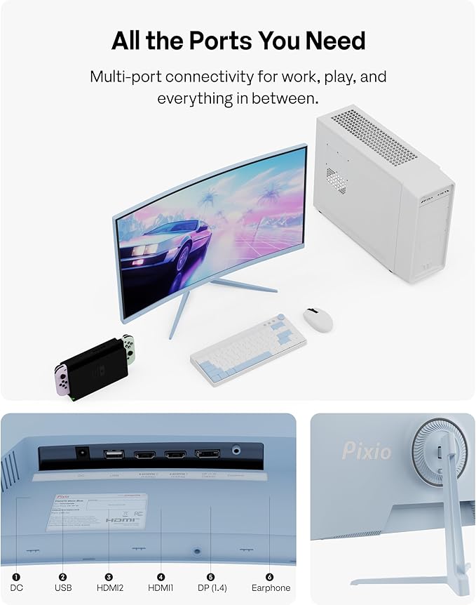 Pixio PXC278 Wave Blue 27 inch 180Hz Refresh Rate QHD 1440p Resolution 1650R Curved Fast VA Panel 1ms GTG Response Time Adaptive Sync HDR Curved Gaming Monitor