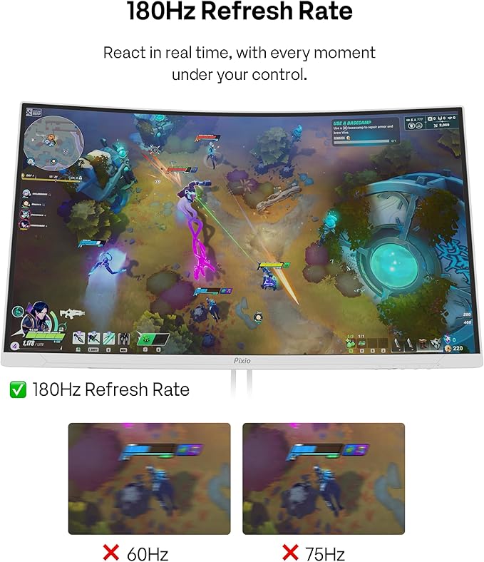 Pixio PXC278 Wave White 27 inch 180Hz Refresh Rate QHD 1440p Resolution 1650R Curved Fast VA Panel 1ms GTG Response Time Adaptive Sync HDR Curved Gaming Monitor