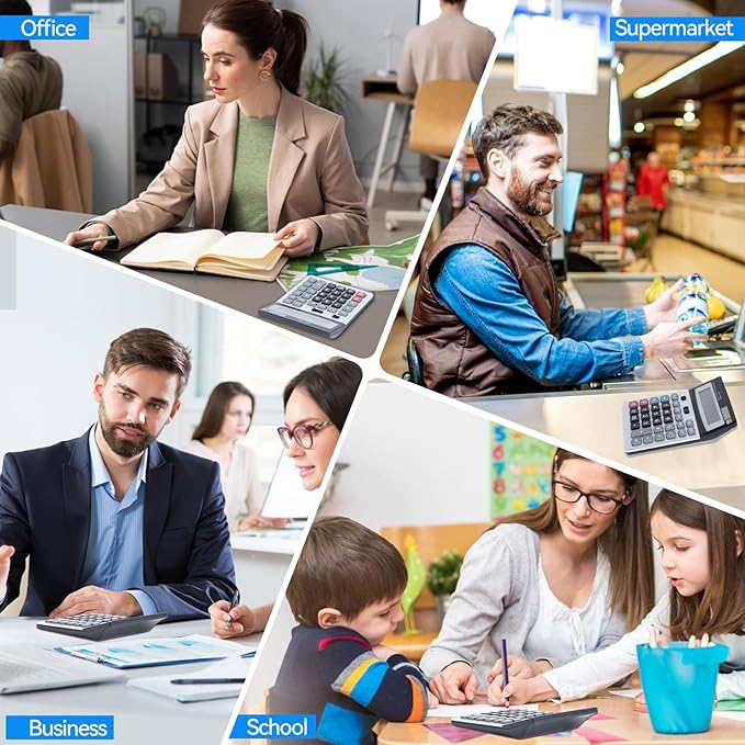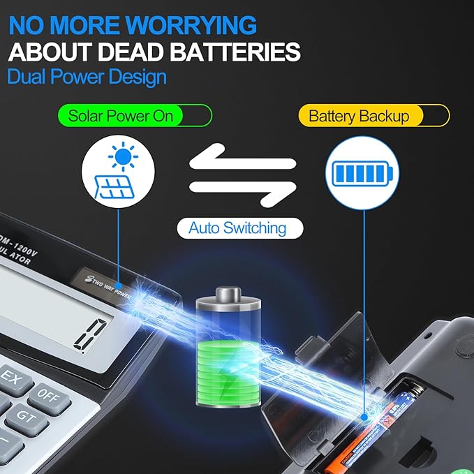 Desktop Calculator 12-Digit with Extra Large LCD Display, Big Buttons for Accounting & Office/School/Home Use - Dual Power (Solar/Battery)