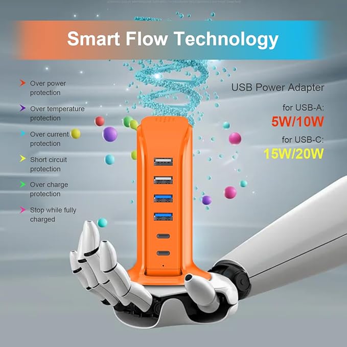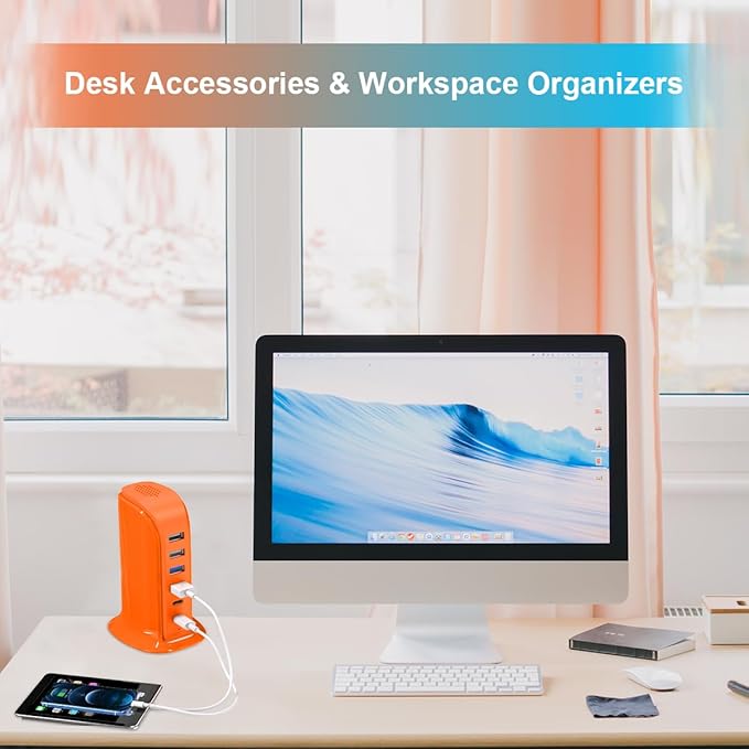 - Desktop cable management: Charging station 6 ports with 5 ft power cord; Compact, Lightweight, Space saving, Portable, Versatile, USB charging hub for 6 devices simultaneously.