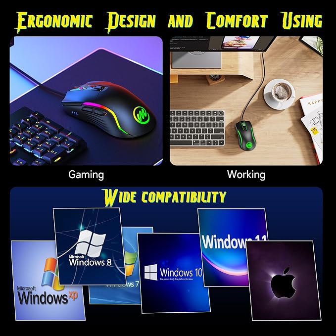- Lightweight & Durable Design – Built for quick, smooth movements and lasting performance. This lightweight gaming mouse is ideal for gamers who want agility and comfort without compromising durability.