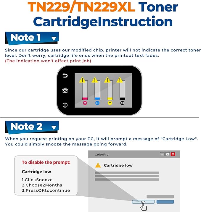 - Printer Compatibility: The TN229XL toner are replacement for Brother tn229xl toner cartridges tn229 work for MFC-L3780CDW, MFC-L3720CDW, HL-L3280CDW, HL-L3220CDW HL-L3295CDW, HL-L3300CDW, HL-L8245CDW, MFC-L3765CDW, MFC-L8395CDW printer.
