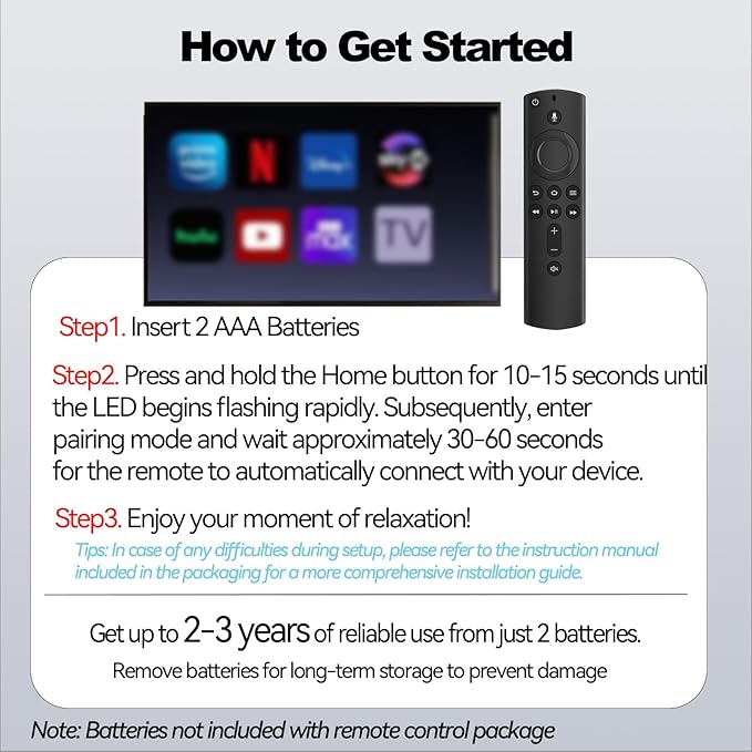 - Attention: You need manually pair your voice remote control, before pairing, ensure the batteries from the old remote control are removed to cancel any previous pairing; For ongoing updates, simply press the voice or return button; If the voice remote becomes unusable, utilize the original remote to manually add or replace it; Verify that your remote is not connected to more than 6 devices to avoid any limitations.