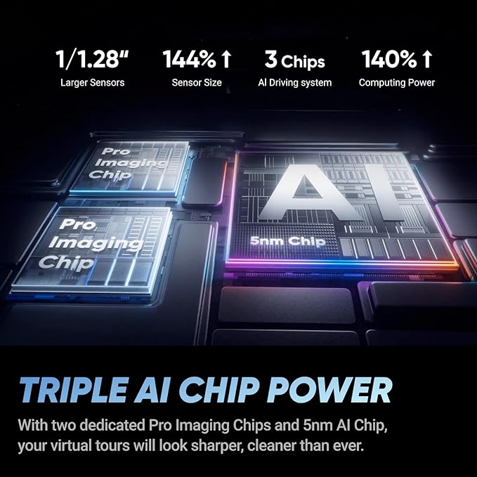 - Bigger Sensor, Better Clarity: Capture 72MP 360 photos, 8K video, and stunning timelapses with large 1/1.28” sensors and a 5nm AI chip & two Pre Imgaing Chips ensuring cleaner, sharper images.