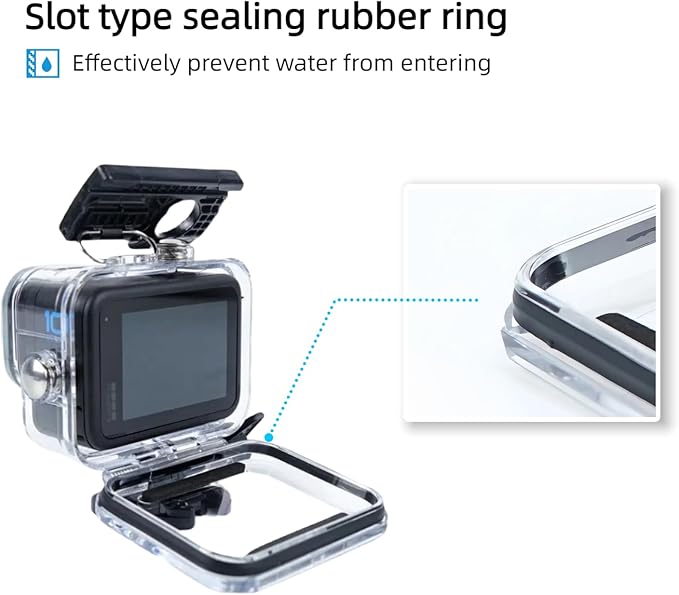 - 【60M/196FT Waterproof】 Even moving underwater at depths of 60 meters/196 feet without worrying about leaks. The waterproof shell adopts an upgraded waterproof sealing ring and tight buckle, effectively avoiding water leakage or fogging. The complimentary anti fog insert can also further effectively absorb water mist.