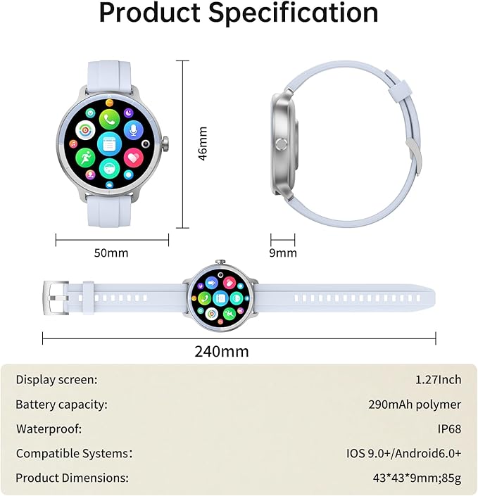 - Smart Watch with Bluetooth Call & AI Voice Assistant: Experience seamless connectivity with this smart watches for men women. The 1.27" HD circular display enables direct Bluetooth 5.3 calls: answer/make calls, store 20 frequent contacts, review call history. Activate built-in AI voice ("Hey Siri"/"Hey Google") to make calls, control music playback, or check real-time weather hands-free. Elevate efficiency during workouts/commutes with instant voice commands.