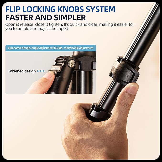 - 【Height Adjustable】: 4-section column legs with 3 quick release flip-locks allows you to adjust the working height from 17.9" to 80.7" in seconds. 18" folden size is easily took to anywhere for outdoor photography.