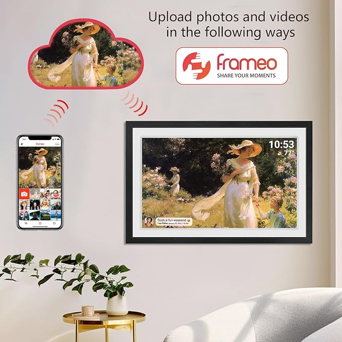 21.5inch FRAMEO Digital Photo Frame with 1920x1080 FHD IPS LCD Touch Screen, Dual-WiFi Share Moments via Frameo, 32GB Storage, USB Drive/SD Card Extend Storage, Auto-Rotate, Wall Mountable with VESA