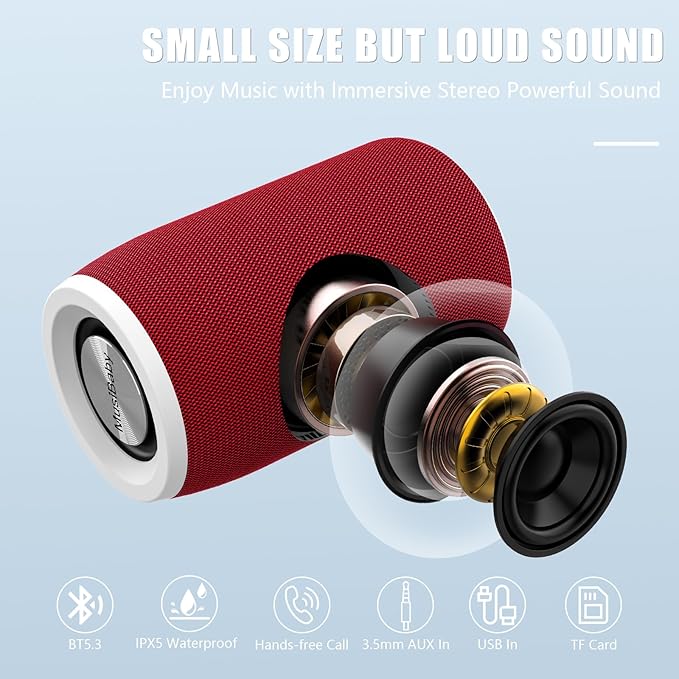 Bluetooth Speaker,MusiBaby Portable Wireless Speakers, Outdoor, Waterproof Speaker with Stereo Sound,Booming Bass,Dual Pairing,Bluetooth 5.3,24H Play,Speakers for Home,Party,Travel,Gifts