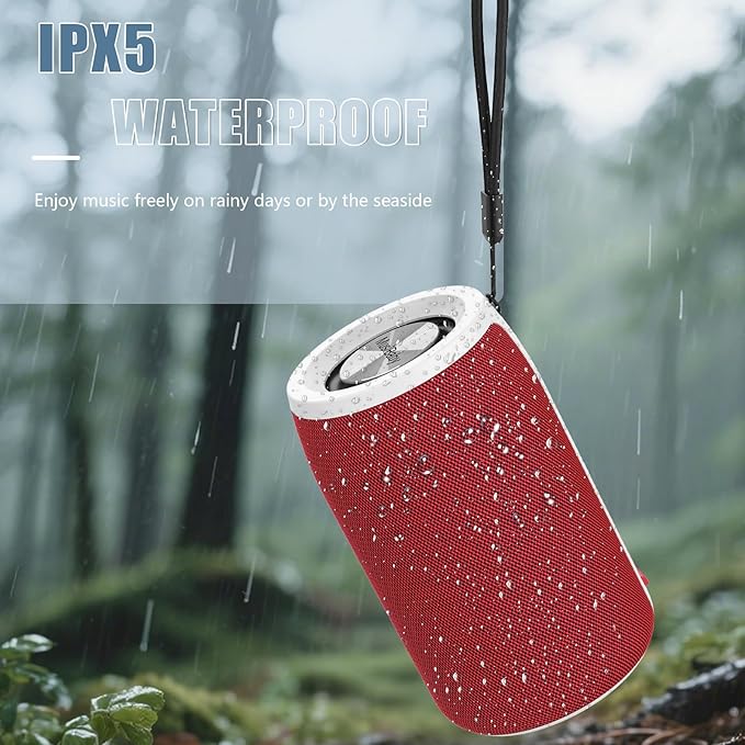 - ♩♪♫【IPX5 WATERPROOF SPEAKER】This bluetooth speaker features a durable design and an IPX5 rating for protection against water splashes and spills,rain,gentle spray. Morever,this waterproof bluetooth speaker is an ideal choice for outdoor events,and is perfect for use at parties, by the pool, on the beach,while camping or hiking.Please don’t put this waterproof bluetooth speaker into water directly! This outdoor bluetooth speakers will be the ultimate portable sound companion for all your adventures