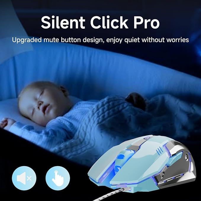 - Plug and Play, Precision Wired: Say goodbye to lag and pairing annoyances. This versatile wired mouse connects instantly for office tasks and intense gaming. Tangle-resistant braided cable (1.8m/6ft) ensures reliable performance wherever you go