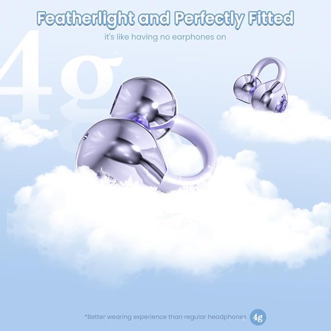 Clip on Earbuds Open Ear Wireless Bluetooth 5.4 Headphones with Mic,60H Play,Noise Cancelling,Waterproof,Sports Ear Buds,Comfortable for Small Ears & Glasses Wearers,Workouts (Purple)