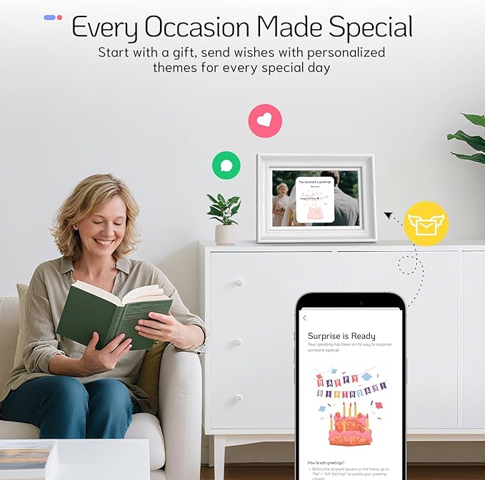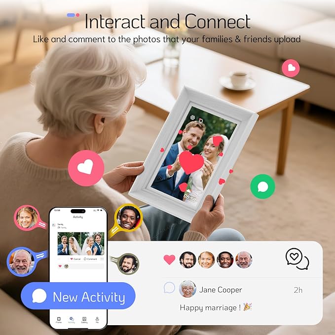 - 【The Most Wished Gift & Unboxing Surprise】NexFoto digital frames come in a beautiful gift-ready box and unboxing surprise which can pre-loaded messages and photos, making them the perfect gift ideas for Mother's Day, Father's Day, and Christmas. For special occasions like anniversaries, weddings, graduations, and birthdays, this meaningful gift will keep all shared memories alive and close to your loved ones.The Newest Way to stay connected by Joining the private social circle with friends and family