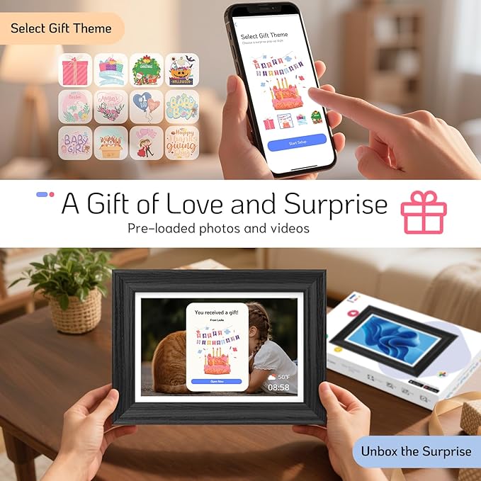 - 【The Most Wished Gift & Unboxing Surprise】NexFoto digital frames come in a beautiful gift-ready box and unboxing surprise which can pre-loaded messages and photos, making them the perfect gift ideas for Mother's Day, Father's Day, and Christmas. For special occasions like anniversaries, weddings, graduations, and birthdays, this meaningful gift will keep all shared memories alive and close to your loved ones.The Newest Way to stay connected by Joining the private social circle with friends and family