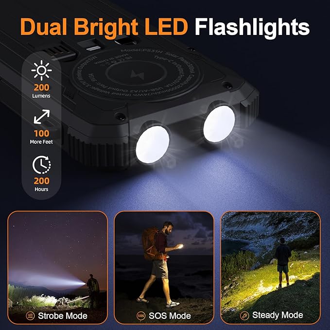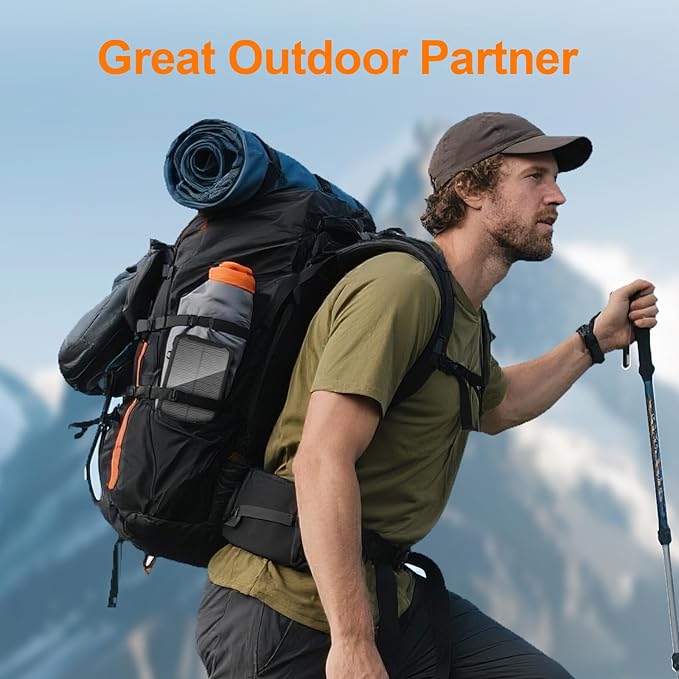 - USB & Type-C & Solar Charging Mode: Solar power bank can be charged by an outlet, type c cable, or solar panel. Please note that the solar charging speed depends on the intensity of light and its influence on the area. It is recommended to fully charge with USB before traveling, with solar charging as an alternative.