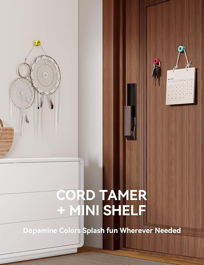- Joy-Boosting Colors, Effortless Cable Control: Inspired by doughnut aesthetics, JOYROOM cord management features a circular shape with a central hollow. For unmatched décor versatility, JOYROOM cable holder offers 4 vibrant color options: Viva Magenta, Mint Chocolate, Lemon Yellow, and Chocolate Brown. Seamlessly integrate it into tech setups, gaming stations, or Nordic kitchens—each hue provides a surprising style boost. Mount your preferred color below cabinets to organize dangling cords into color-coordinated cable control